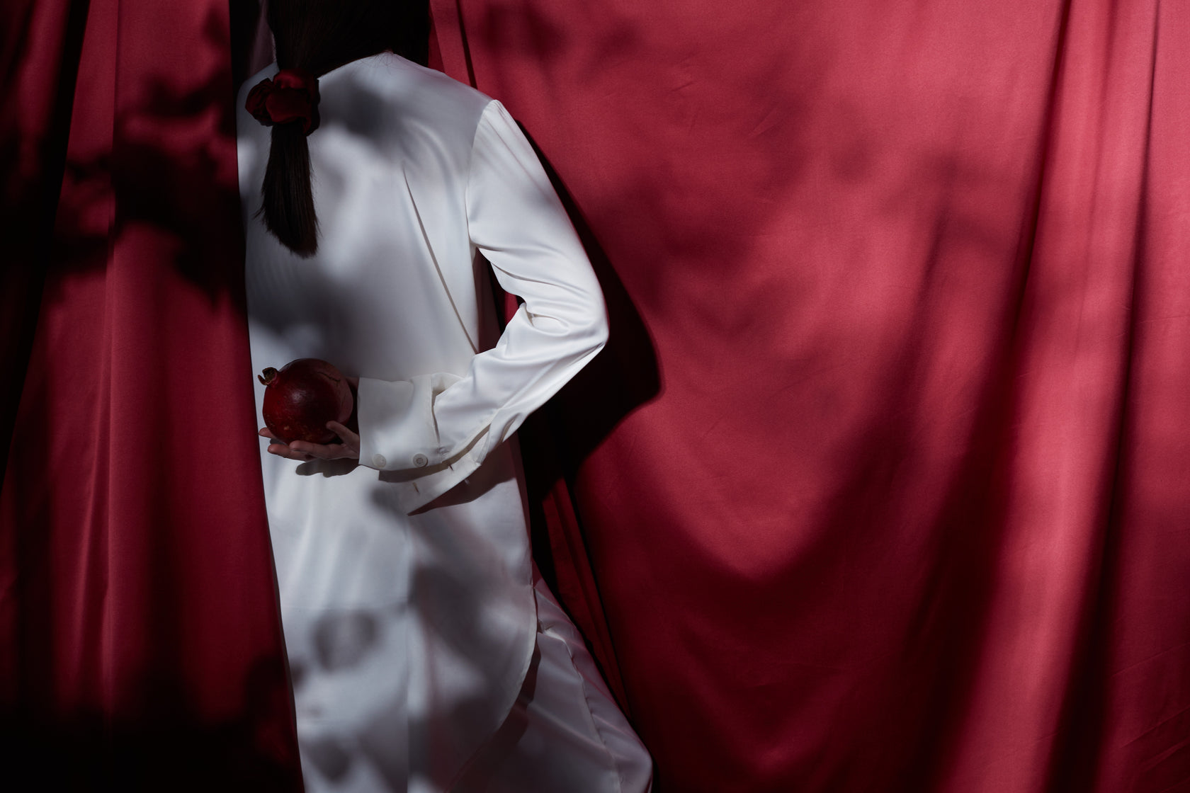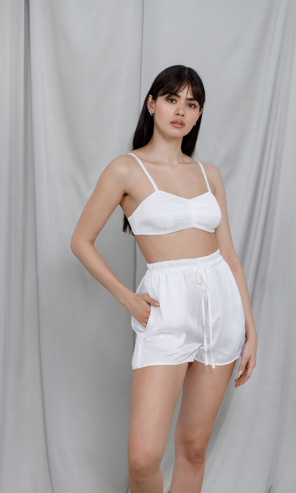 Pantaloni-Schuhe aus satiniertem Elfenbein