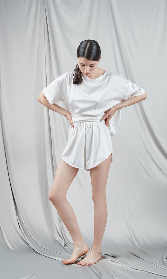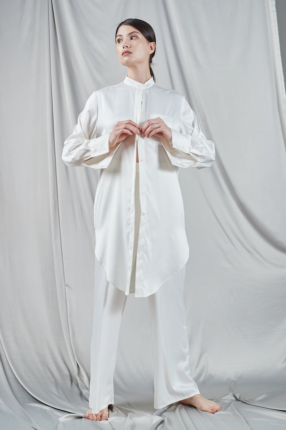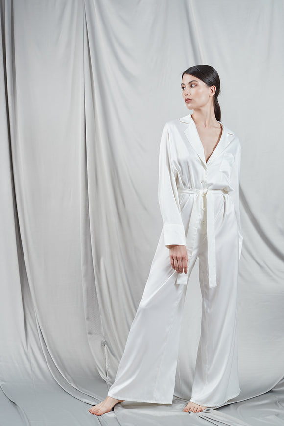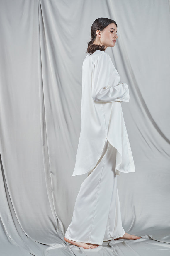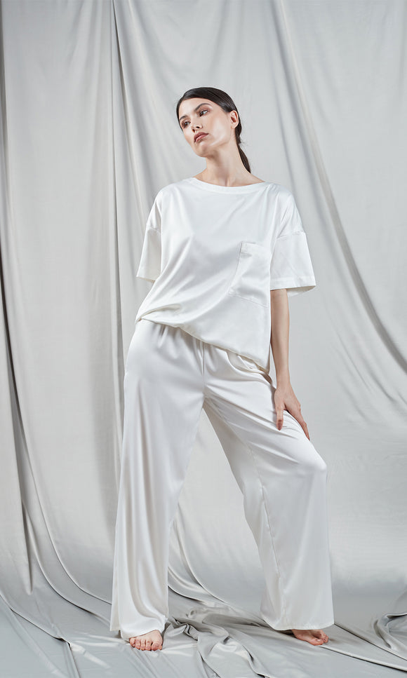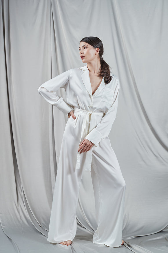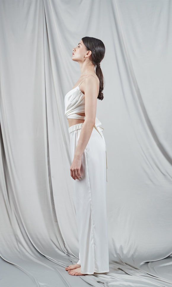 Pantaloni Palazzo aus satiniertem Elfenbein