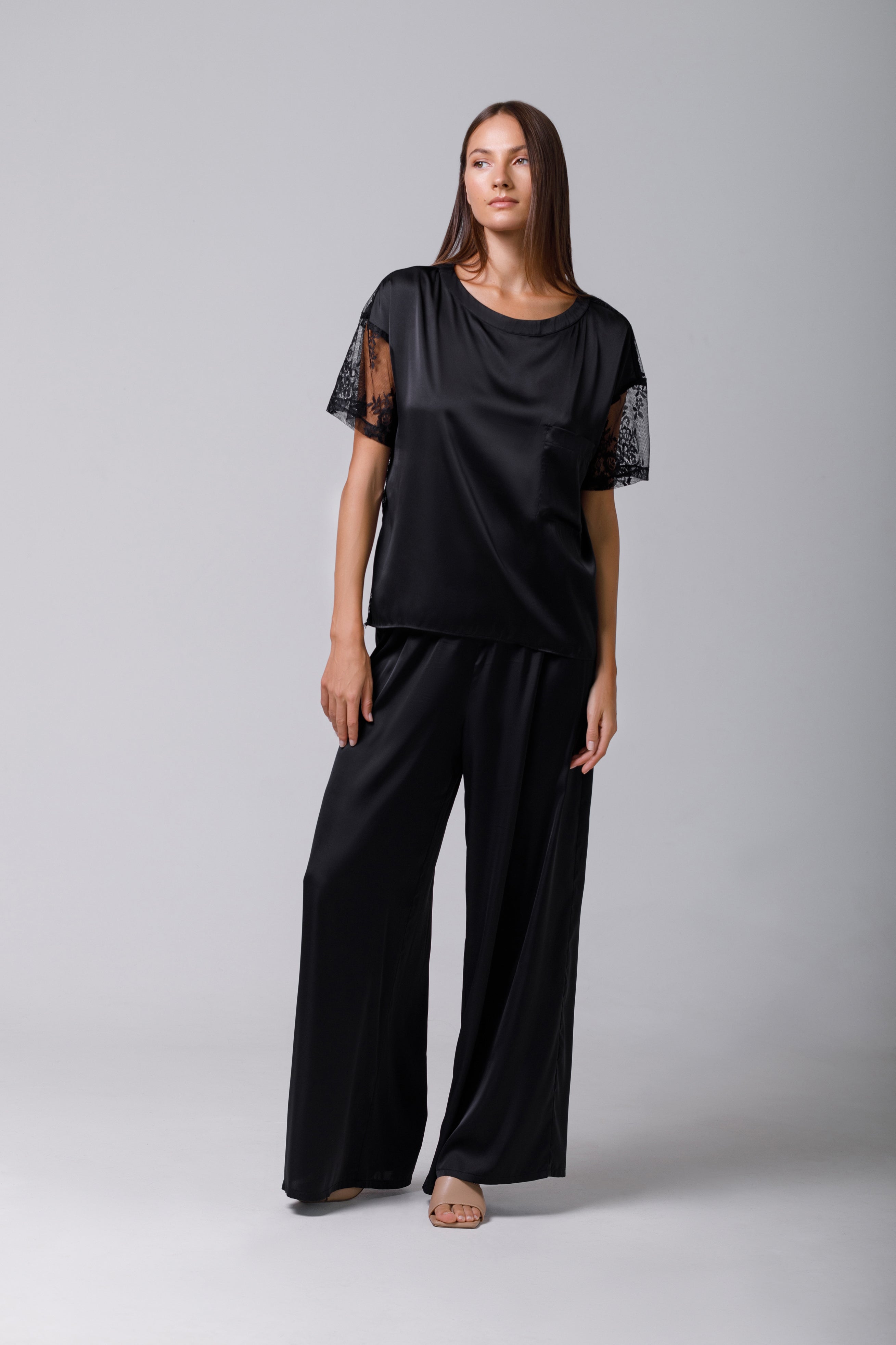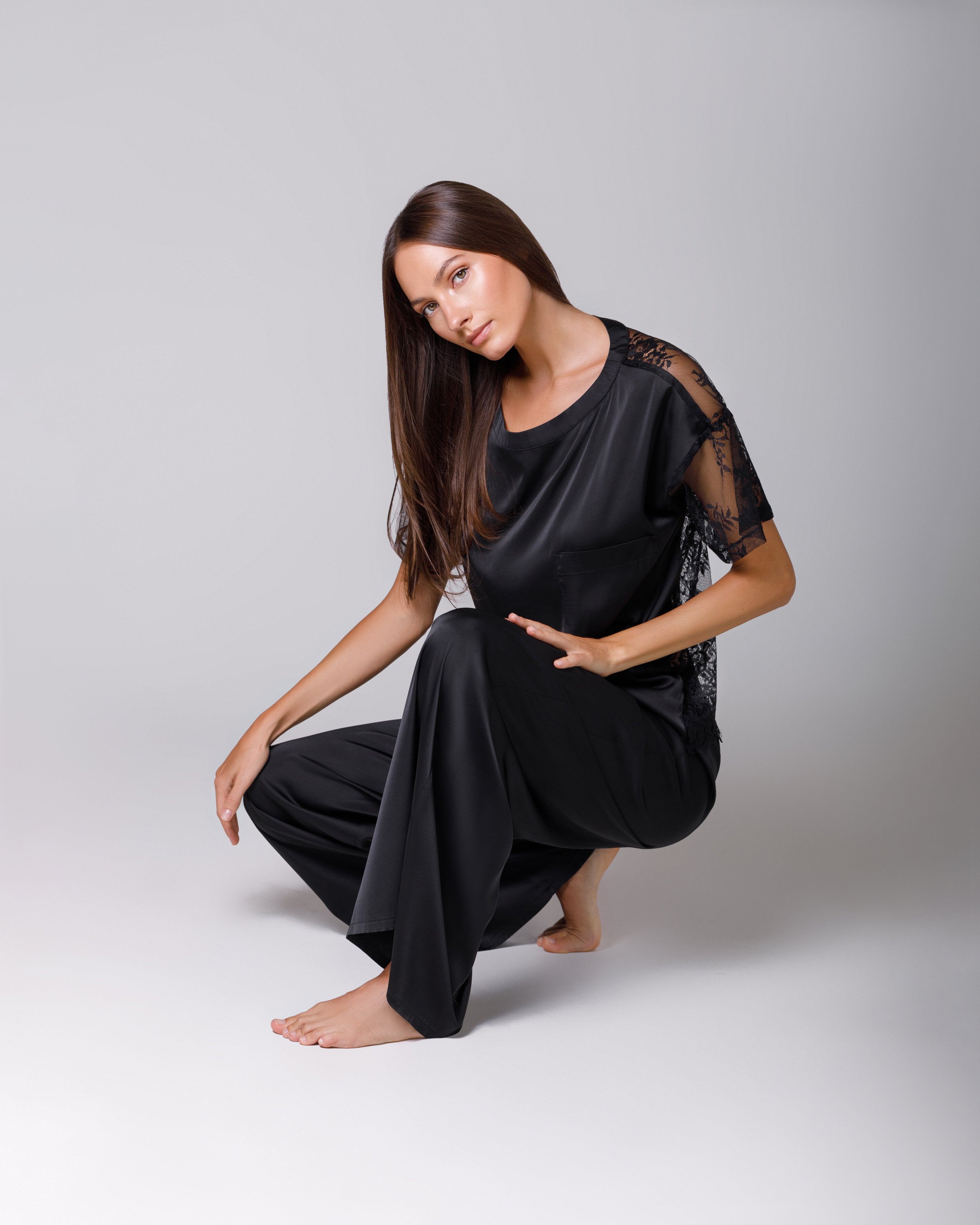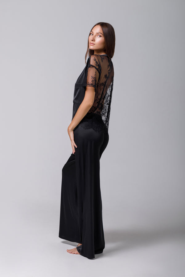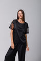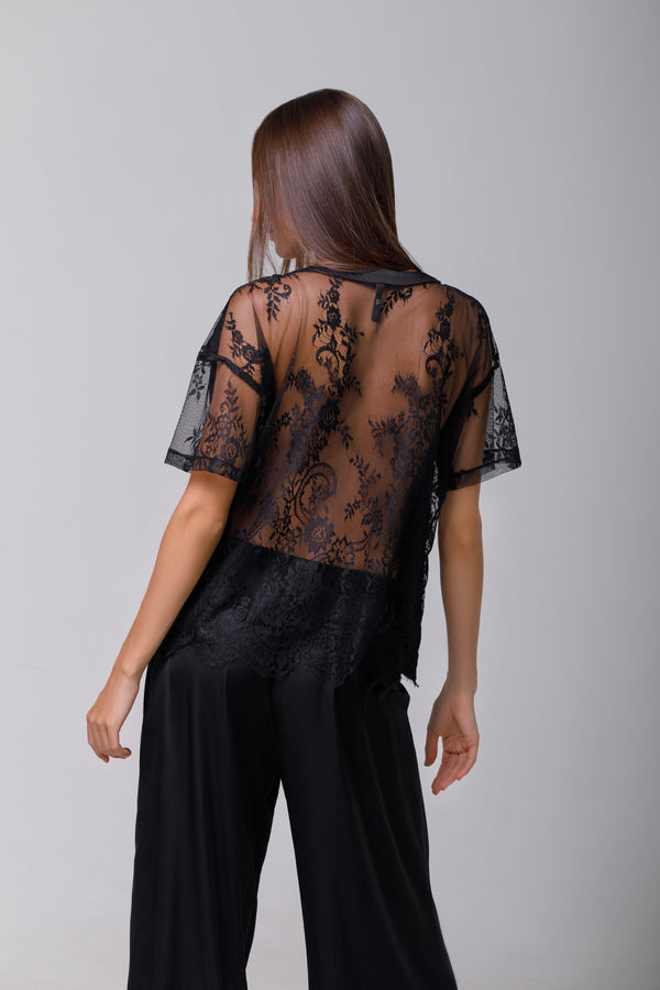 Tricou din satin black cu dantelă