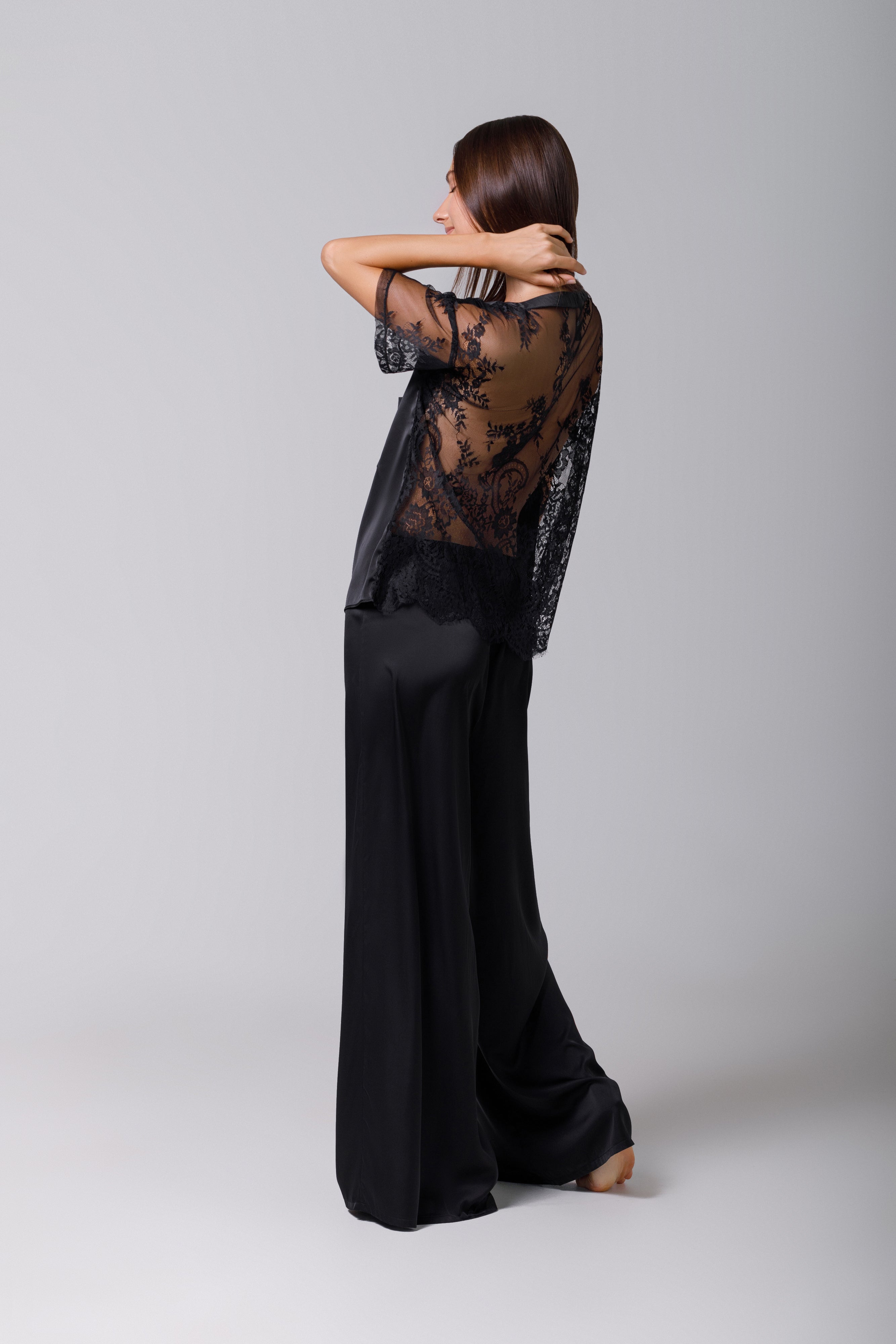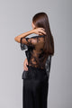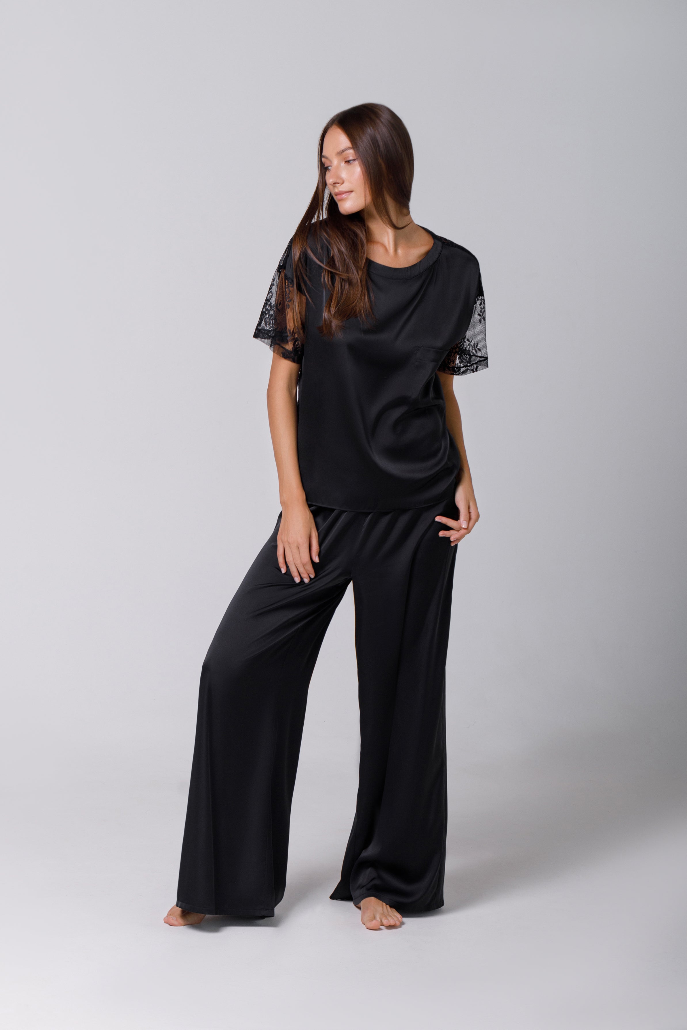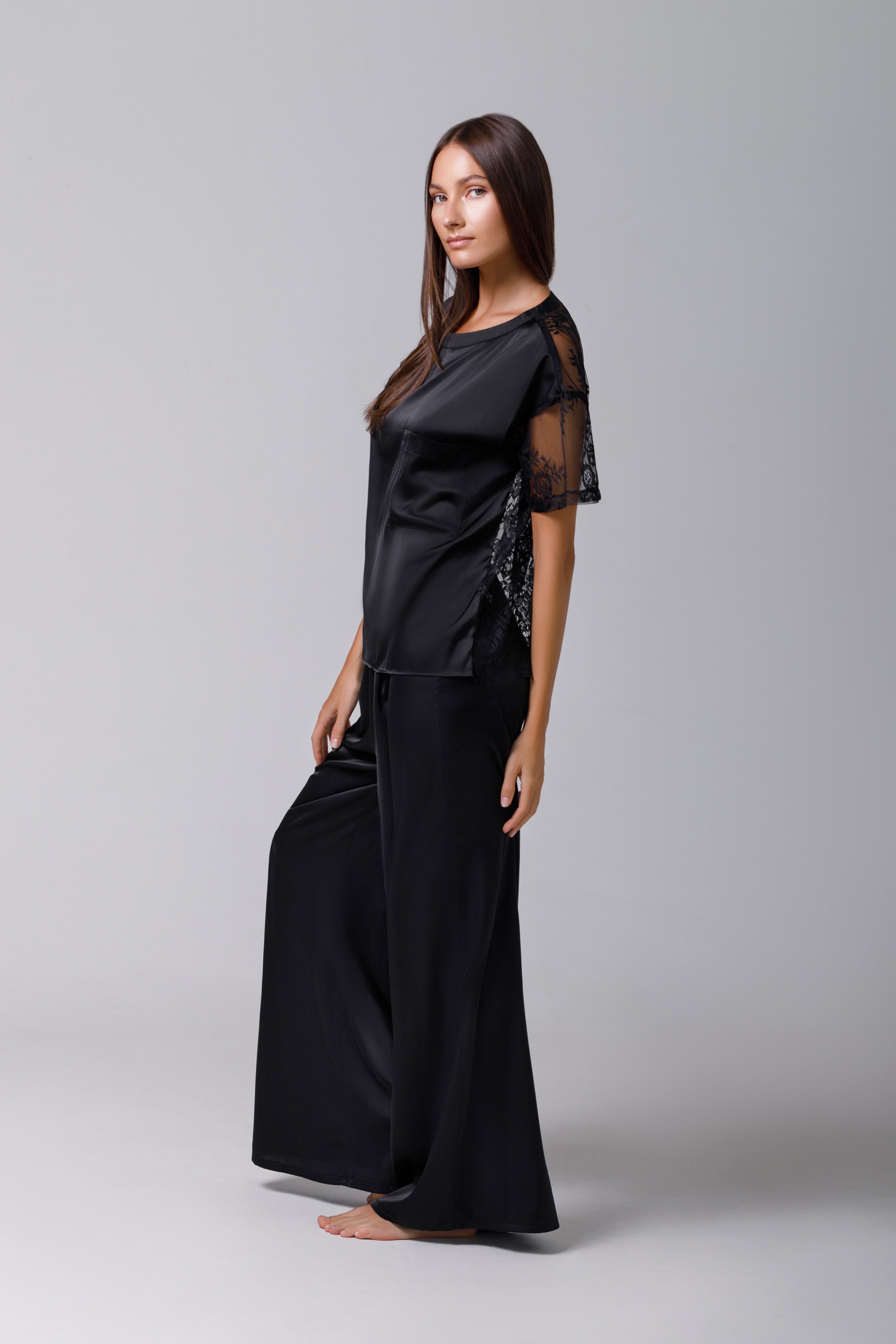 Tricou din satin black cu dantelă