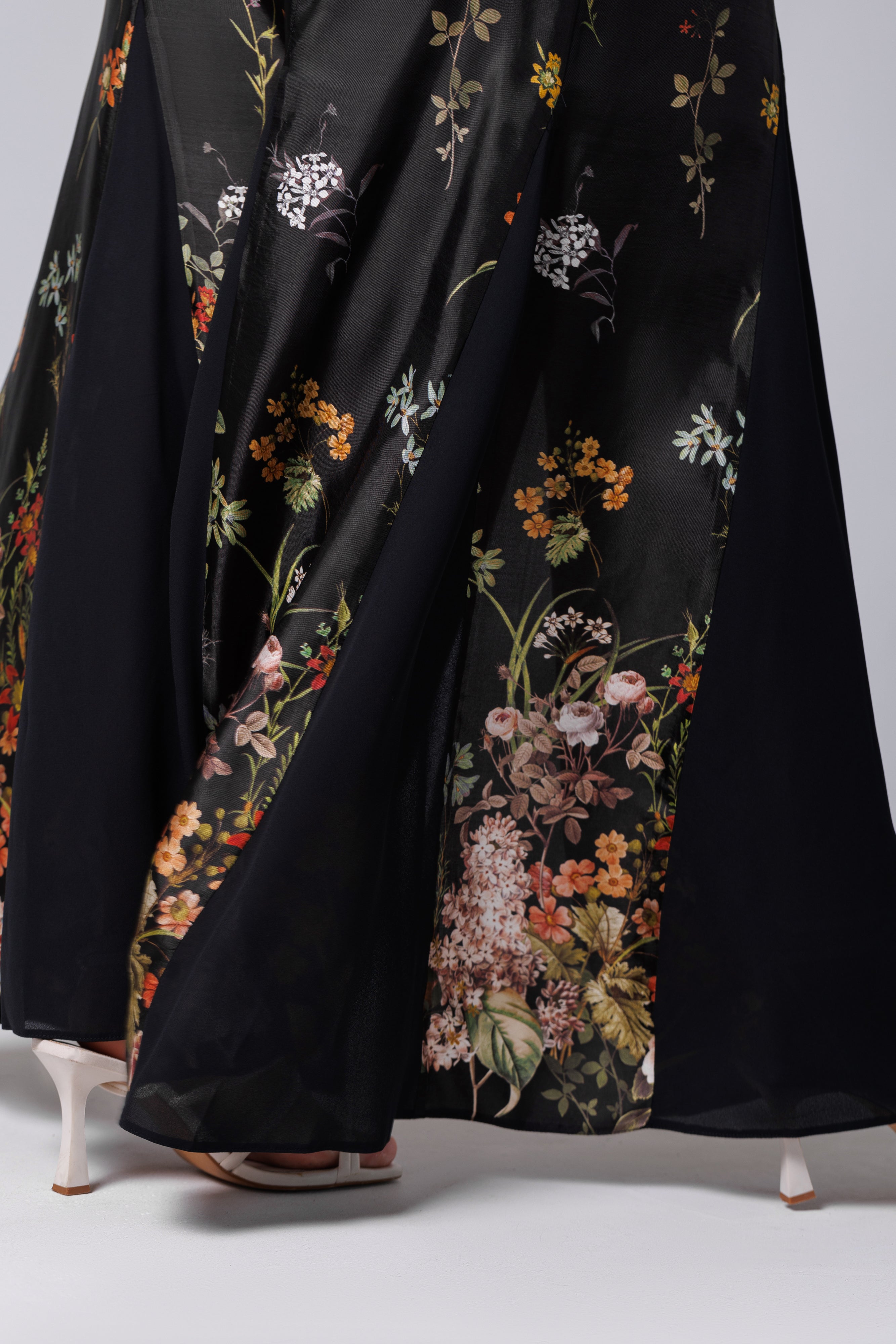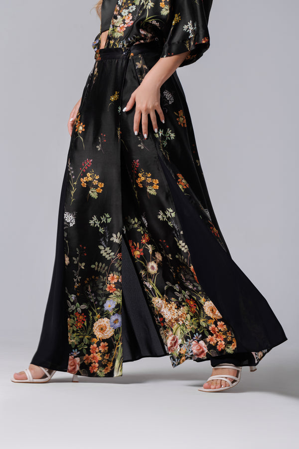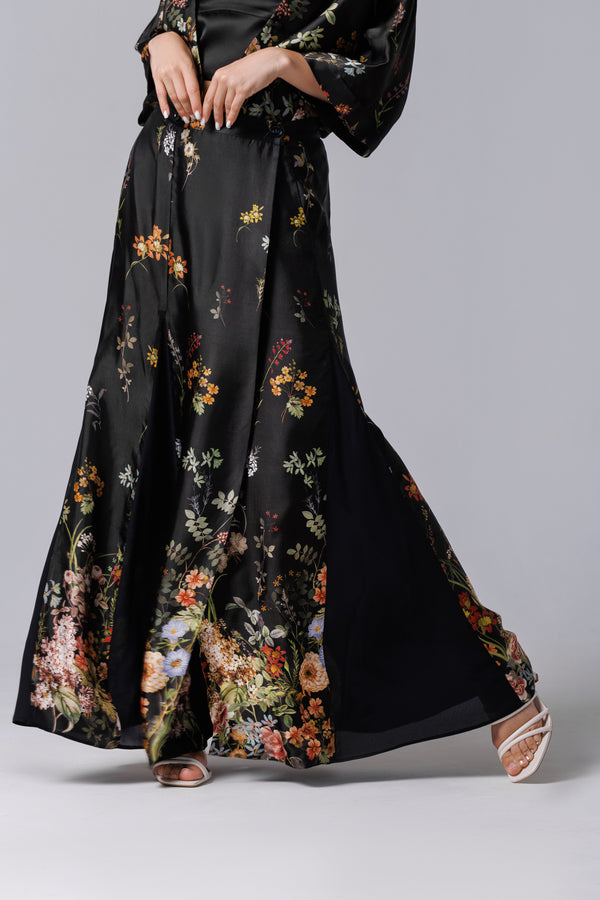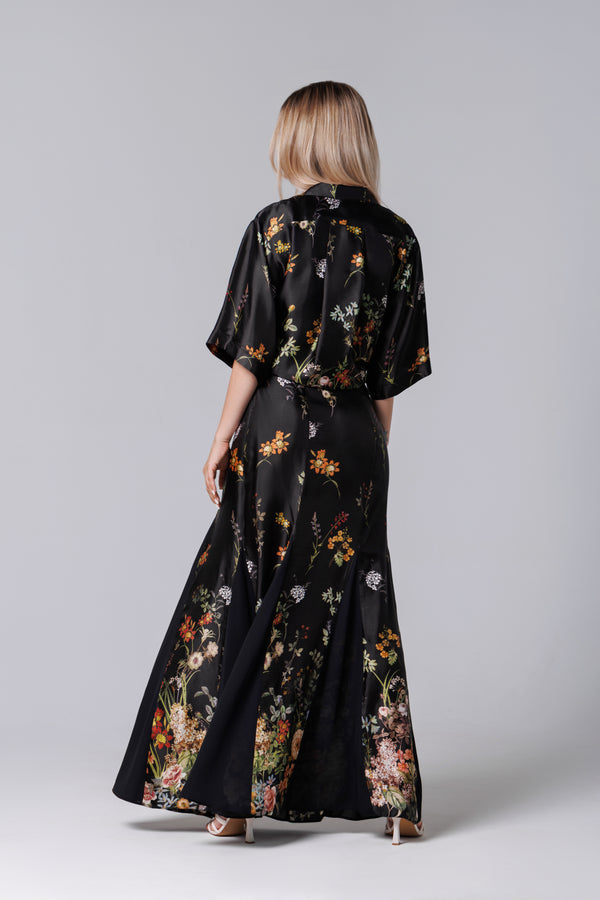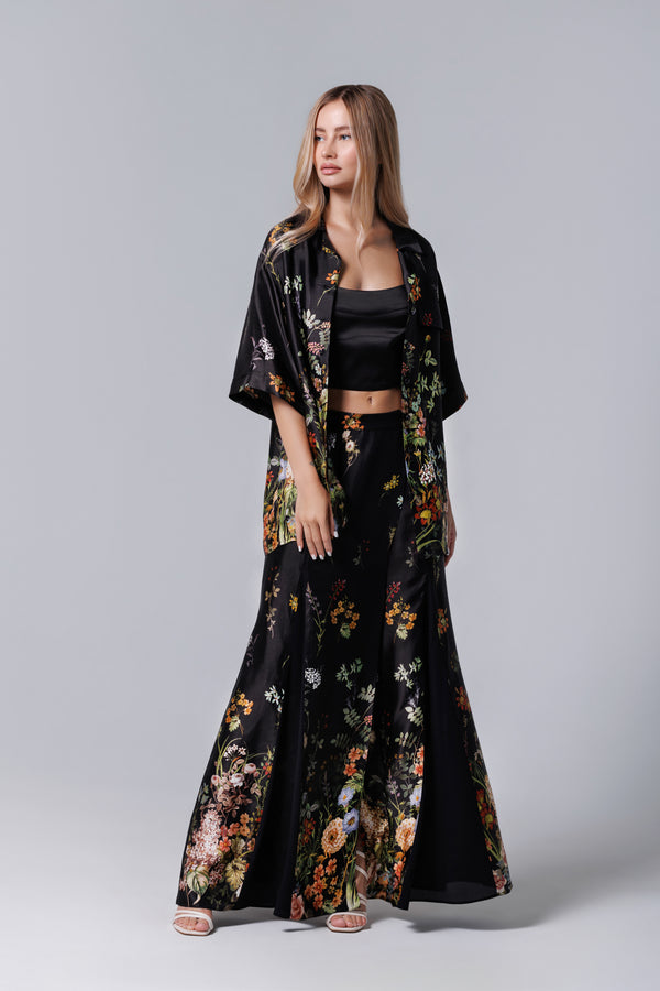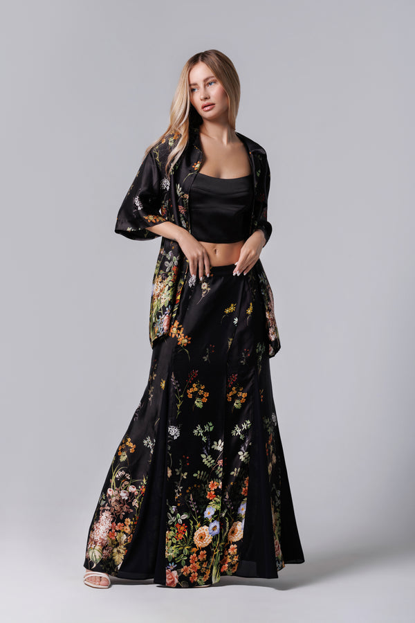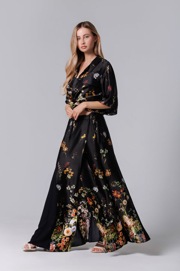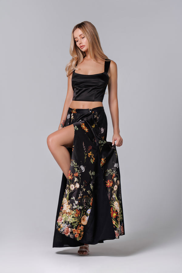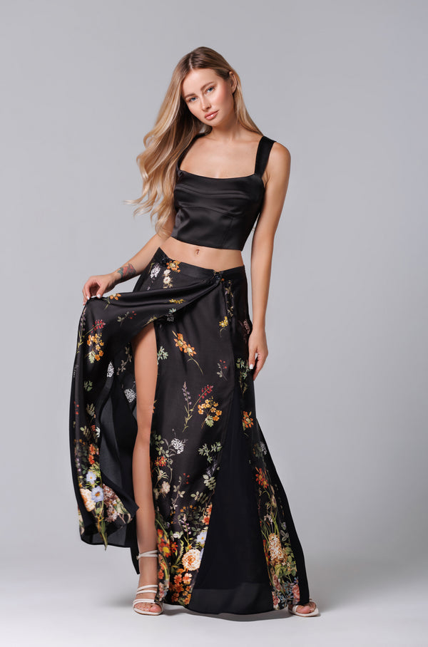 Fusta longa neagra mit floralem Aufdruck