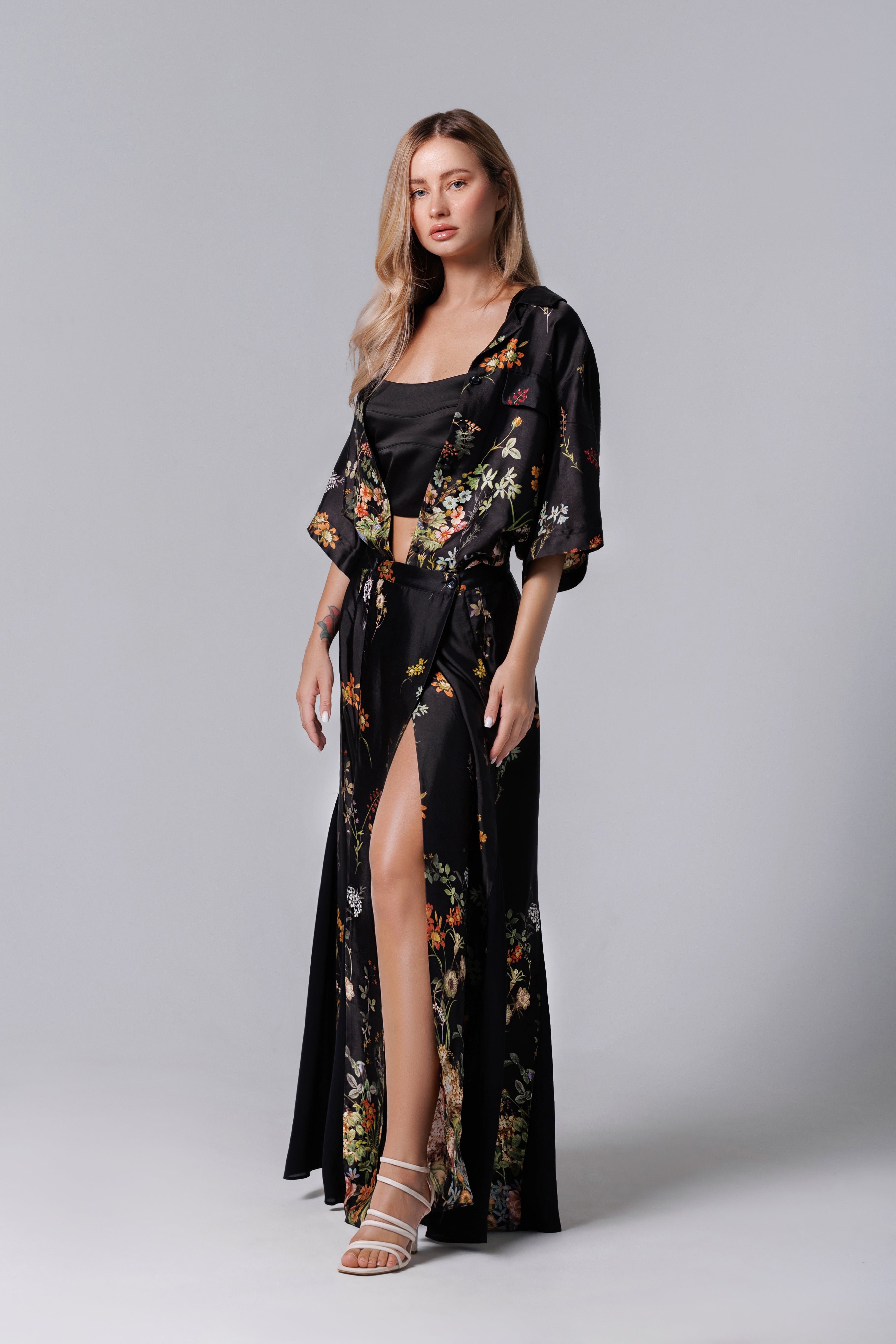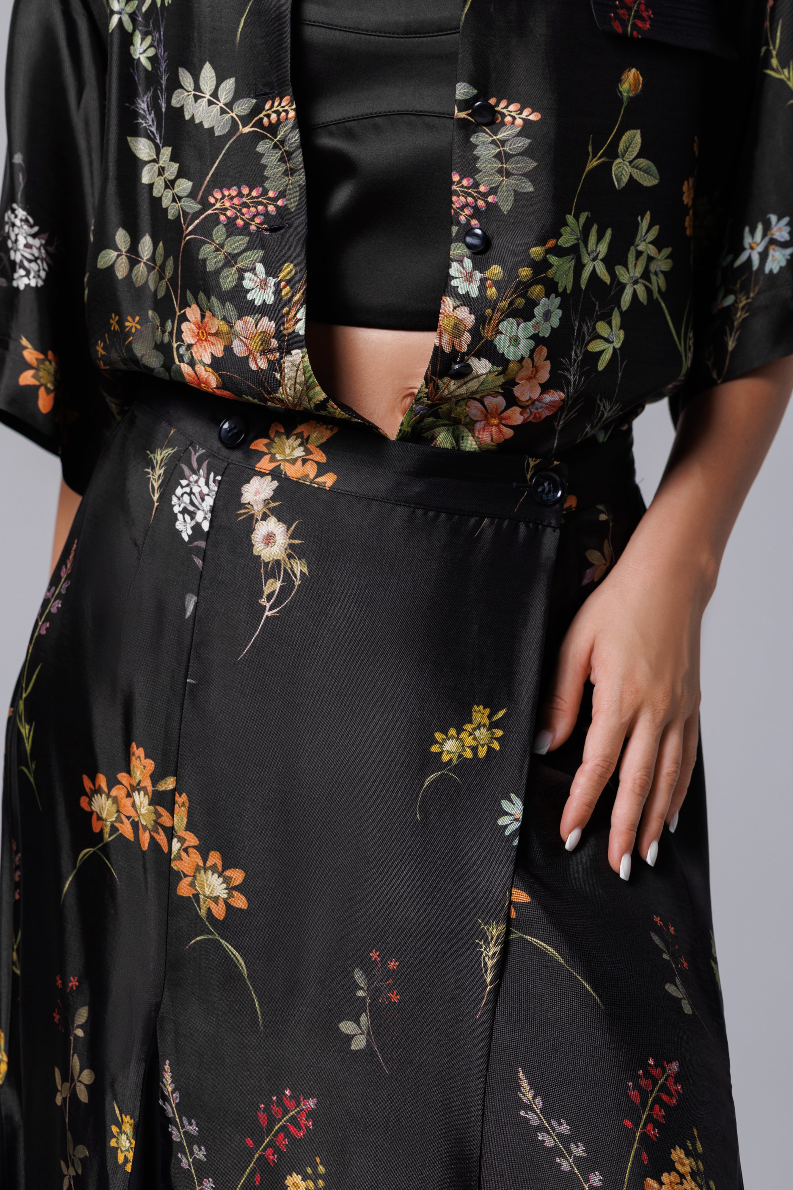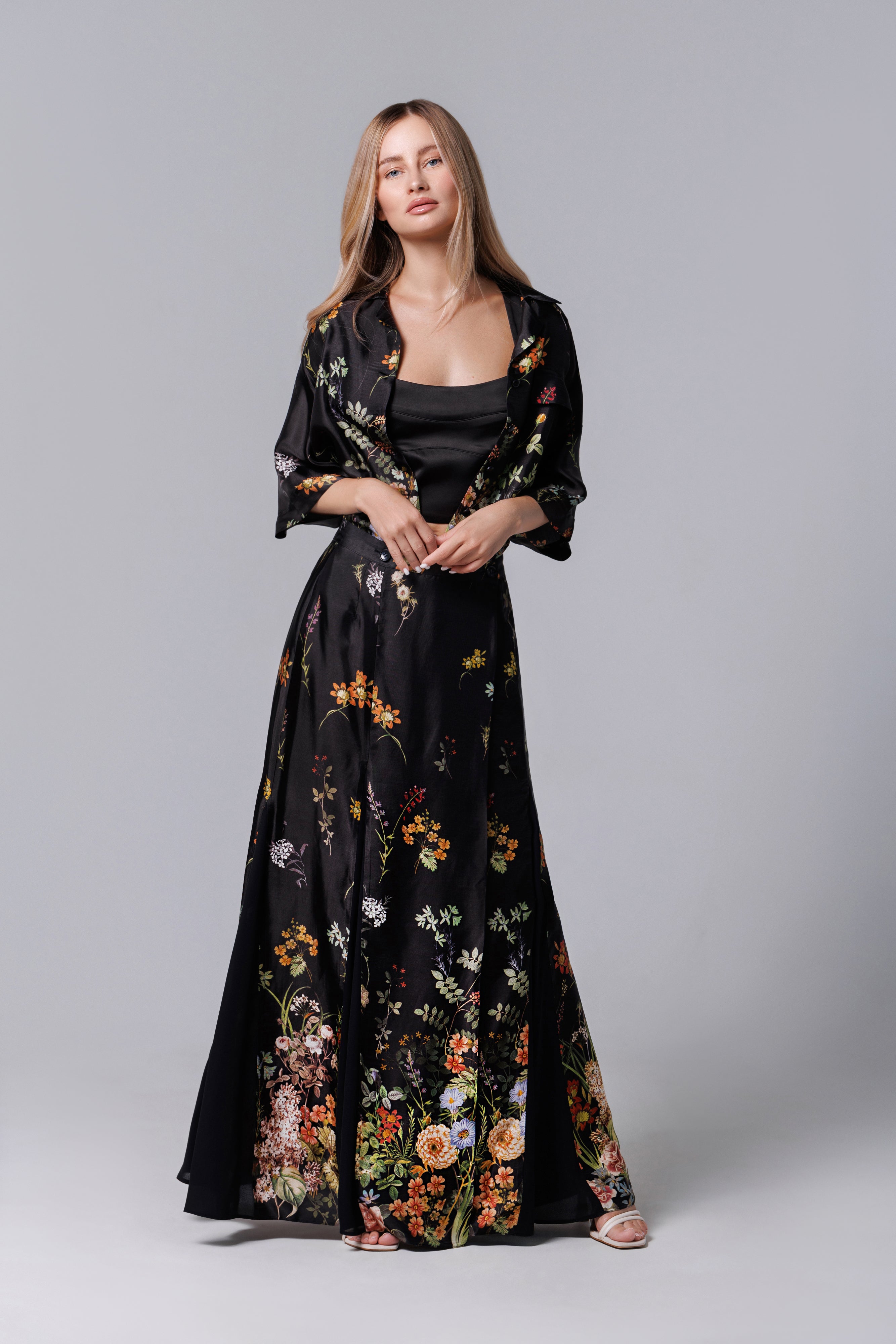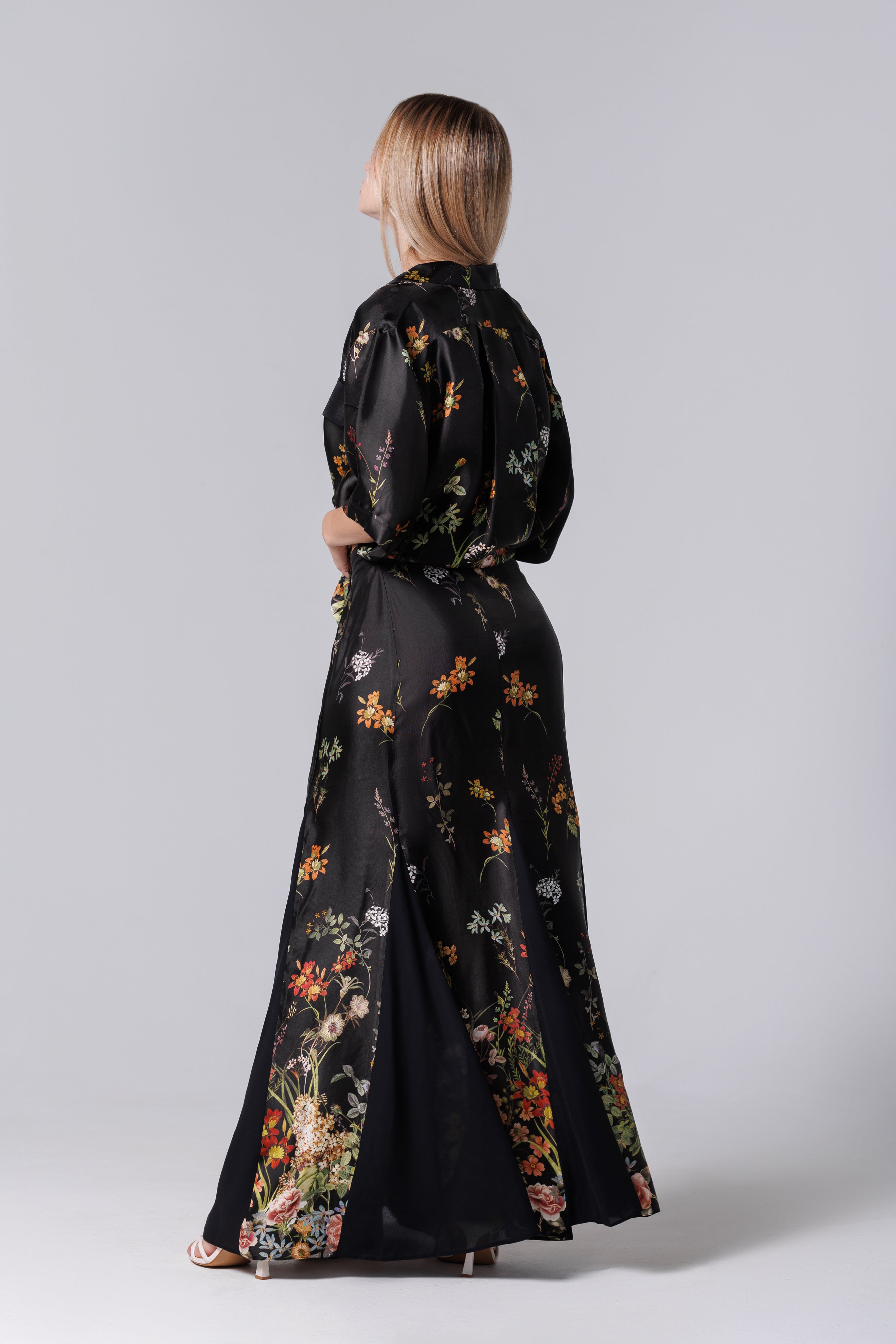 Fusta longa neagra mit floralem Aufdruck