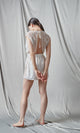 Gepolstert aus elfenbeinfarbenem Satin mit Glitzer
