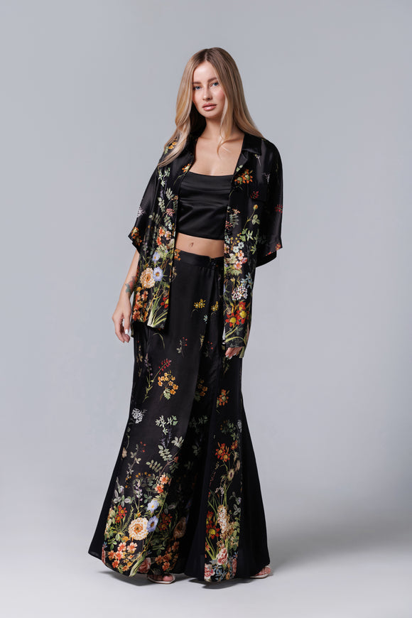 Pantalon noir classique à imprimé floral