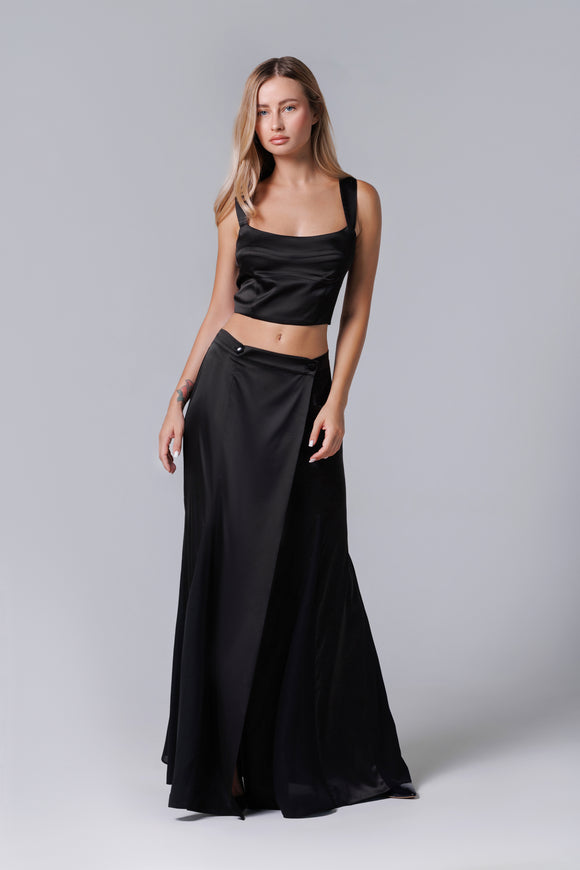 Jupe longue en satin noir