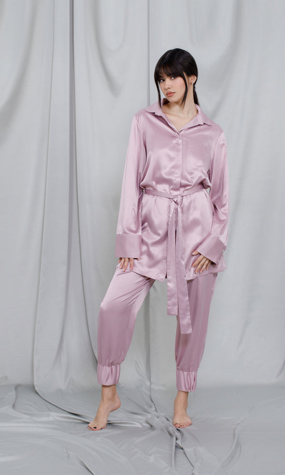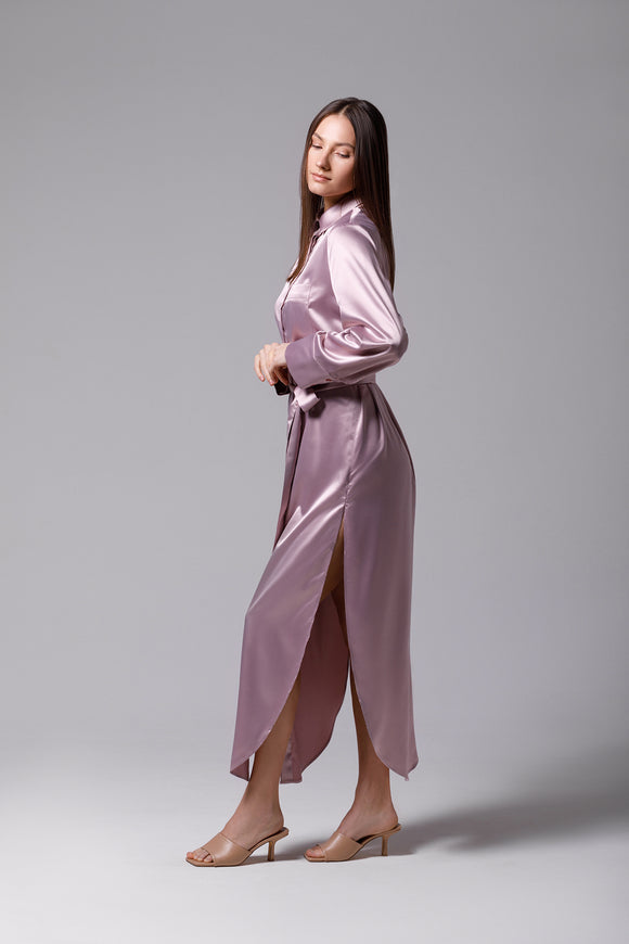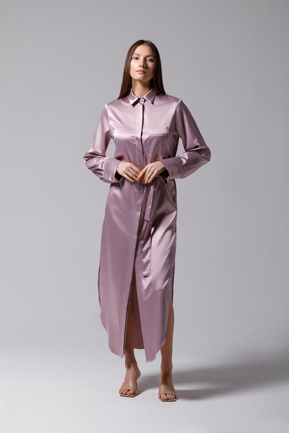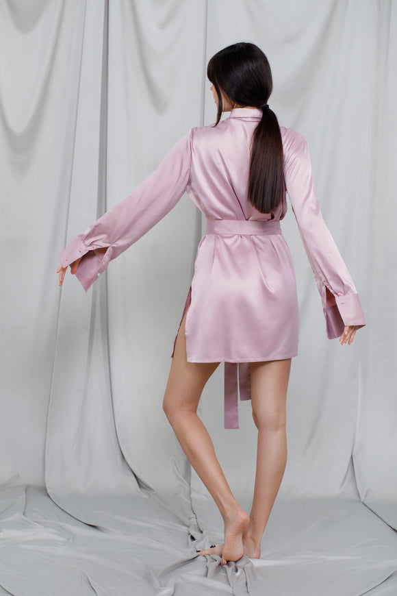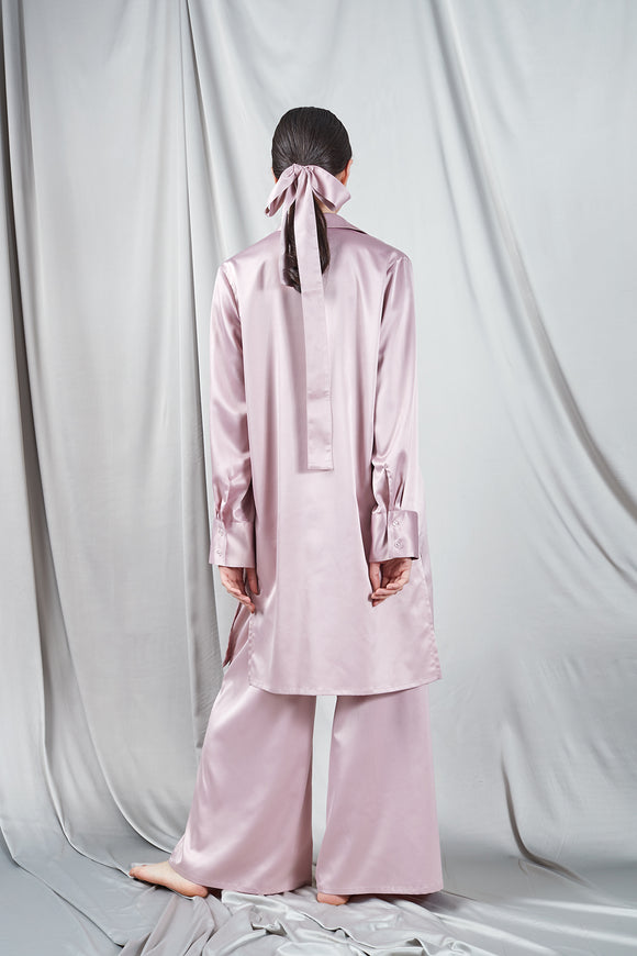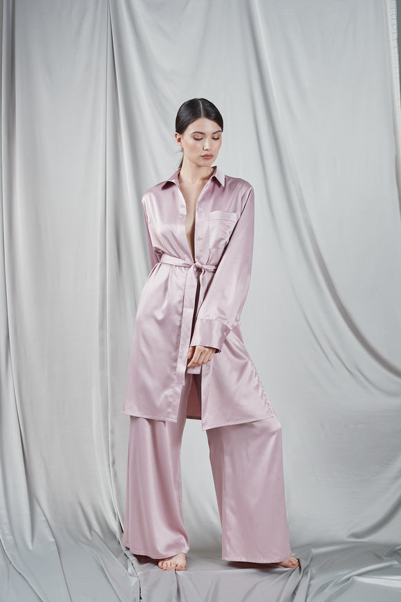 Chemise longue en satin rose pâle