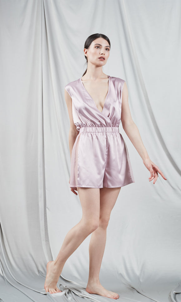 Combinaison en soie rose pâle avec dentelle