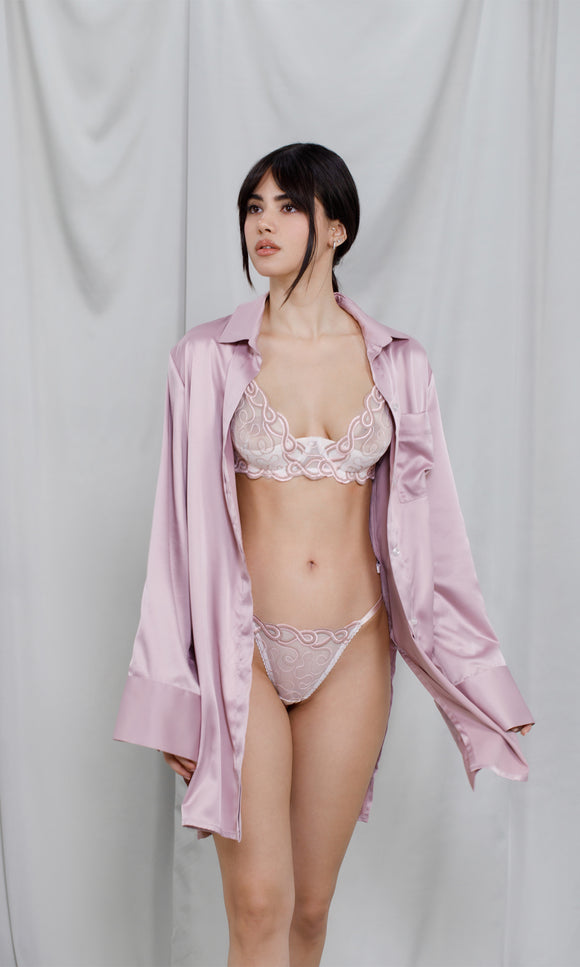 Chemise courte en soie rose pâle