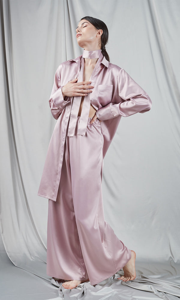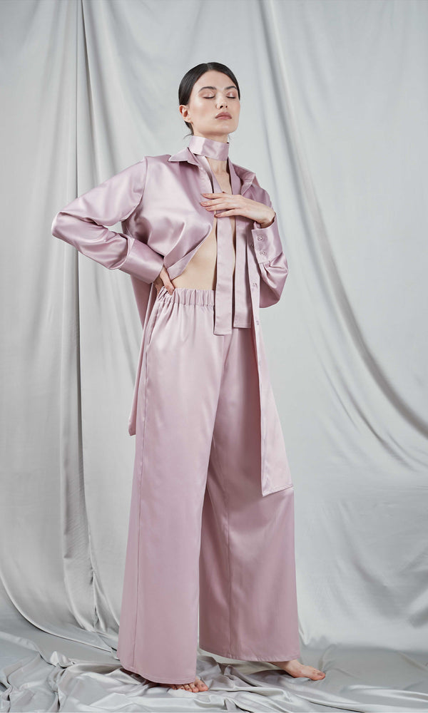 Dress in ultimate comfort with our Pink Palazzo Pants, crafted from the finest satin, so soft you'll want to spend every moment in them. Fitted with an elasticated waist for a perfect fit, these pants are the definition of comfort and style. Pair with one of our tops for a casual-chic look or complete the ensemble with one of our coordinating bustiers or robes for a delightful and sophisticated outfit.