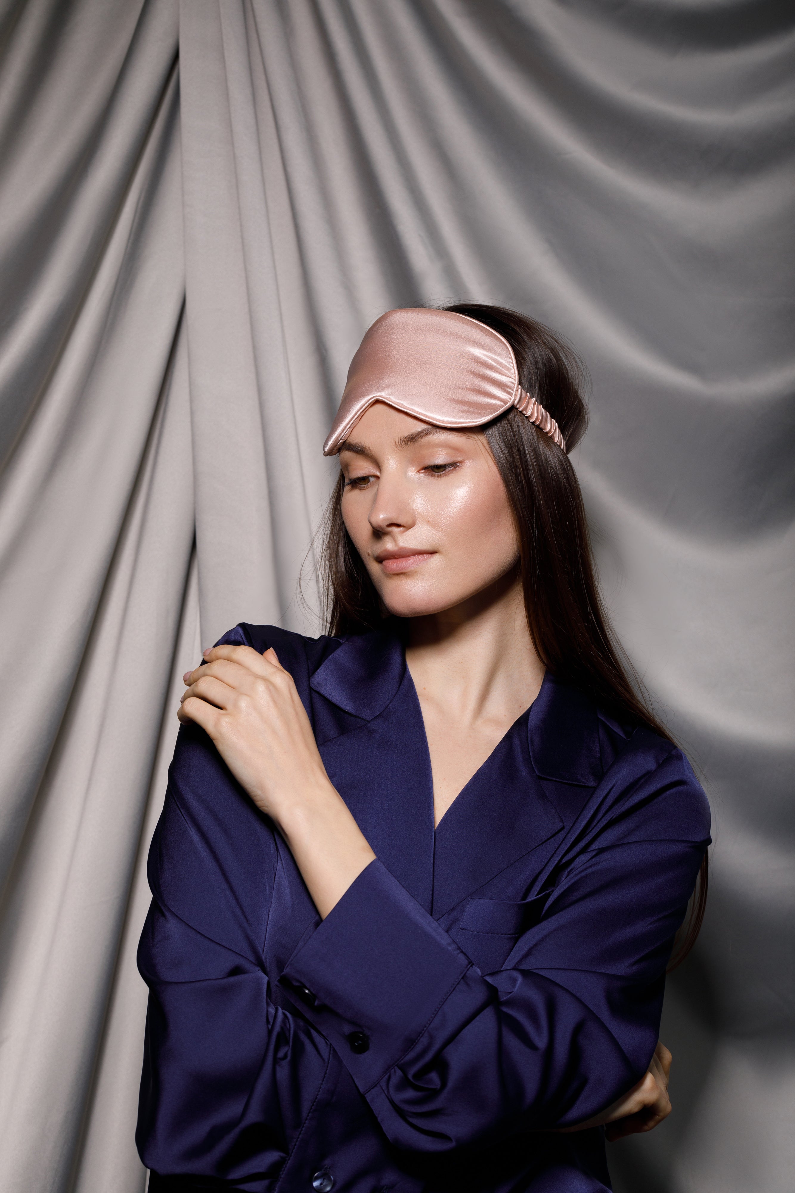 The culmination of our best-selling silk pyjama collection, the rose-hued sleep mask is the perfect complement to the ensemble. Crafted with the same attention to contrasting details as the entire collection, this mask is made entirely of satin, offering a soft, skin-friendly feel. It's the essential accessory for a restful, luxurious night's sleep.